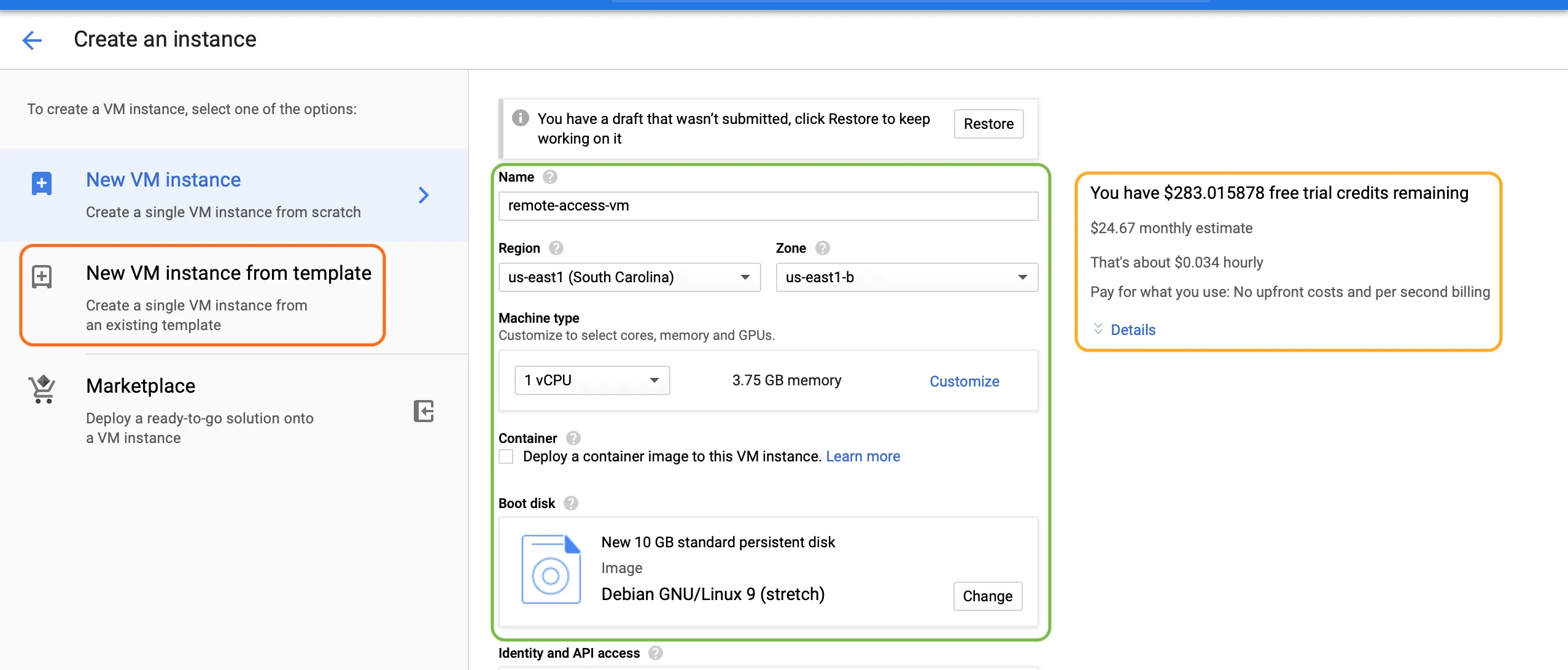 Also, once you got familiar with the process, do explore the Instance Template section for a more robust process of generating virtual machines from pre-defined sets of template.