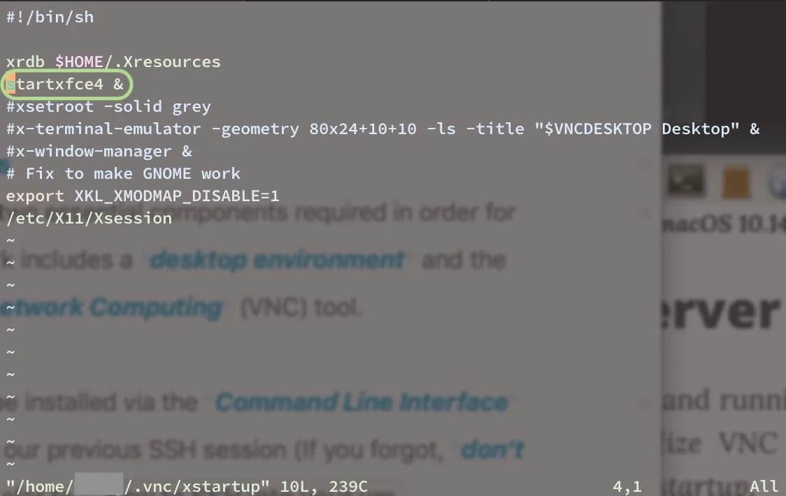 Before configure any settings, always backup or at least write down every step so that it’s easier for you to trace back later. Also, turn off VNC server and close port tightvncserver -kill: X with X essentially the number of your session.