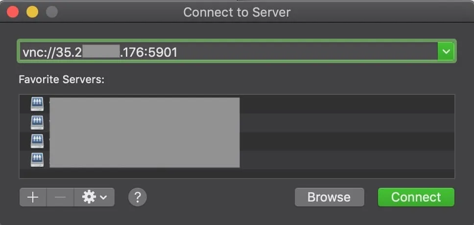 Once having the External IP of your instance, access to it using any of the available VNC Viewer for your computer OS.